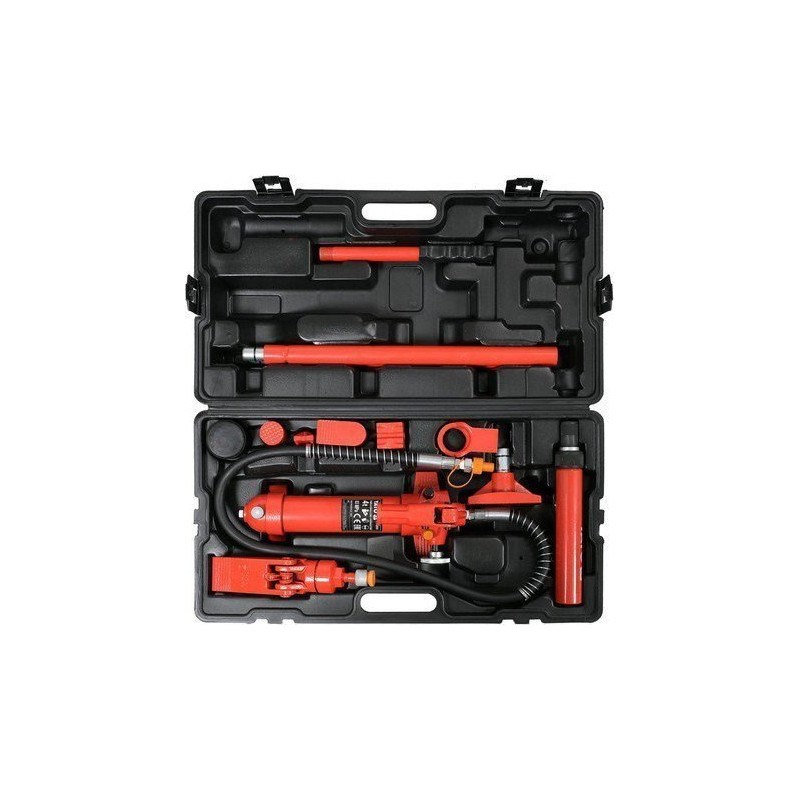 Rozpierak 4-tonowy przeznaczony do prac warsztatowych, montażowych i blacharskich wymagających zastosowania znacznych sił statycznych. Urządzenie wykorzystywane jest do podnoszenia, rozciągania, rozpierania, zginania, prostowania i wyciągania. skok tłoka: 125 mm ciśnienie: 560 bar zakres pracy: 270-395 mm w zestawie: pompa do rozpieraka 4 przedłużki: 115, 170, 250, 470 mm szczęki rozpierające 0,5 t 8 akcesoriów: nasadka okrągła, płaska, szczelinowa, typu V oraz gumowa, zaczep siłownika i tłoka, łącznik męski...