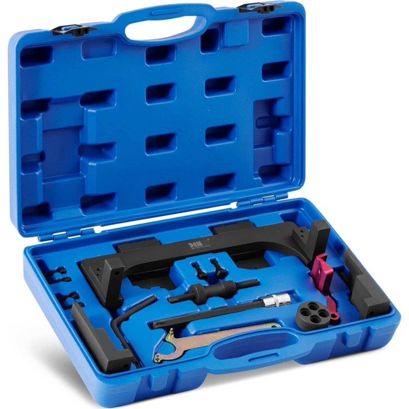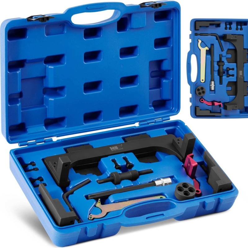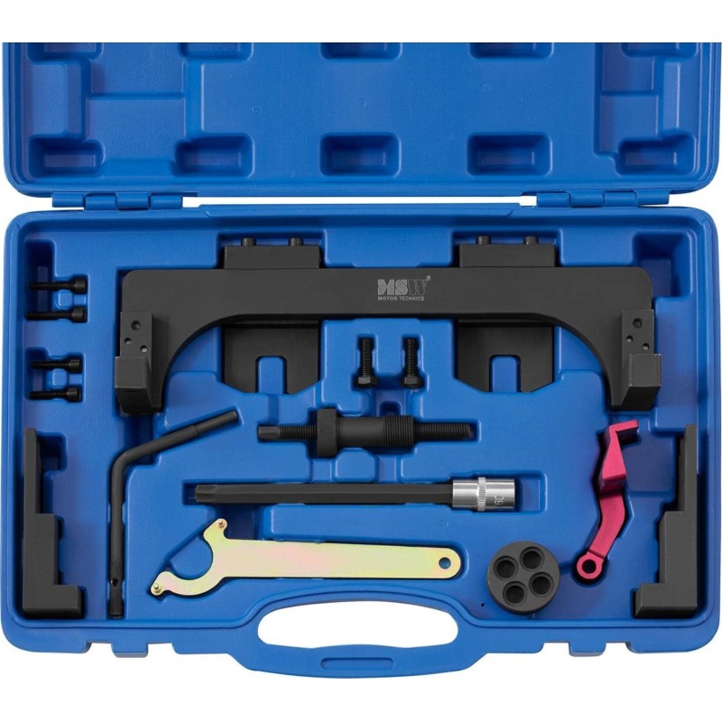 Blokada rozrządu marki MSW sprawdzi się w warsztatach i garażach. Pozwala samodzielnie wykonać skomplikowane prace na wielu modelach BMW z silnikami modułowymi, np. B38, B48 i B58. Sprzęt ten jest optymalnie dopasowany do odpowiednich elementów silnika i dlatego jest łatwy w użyciu. Blokada rozrządu gwarantuje najskuteczniejszą metodę mocowania i regulacji silnika. Narzędzia wykonane zostały z wytrzymałej stali węglowej, zapewnią wieloletnie działanie. W komplecie znajduje się walizka do wygodnego przechowywania i przenoszenia narzędzi.