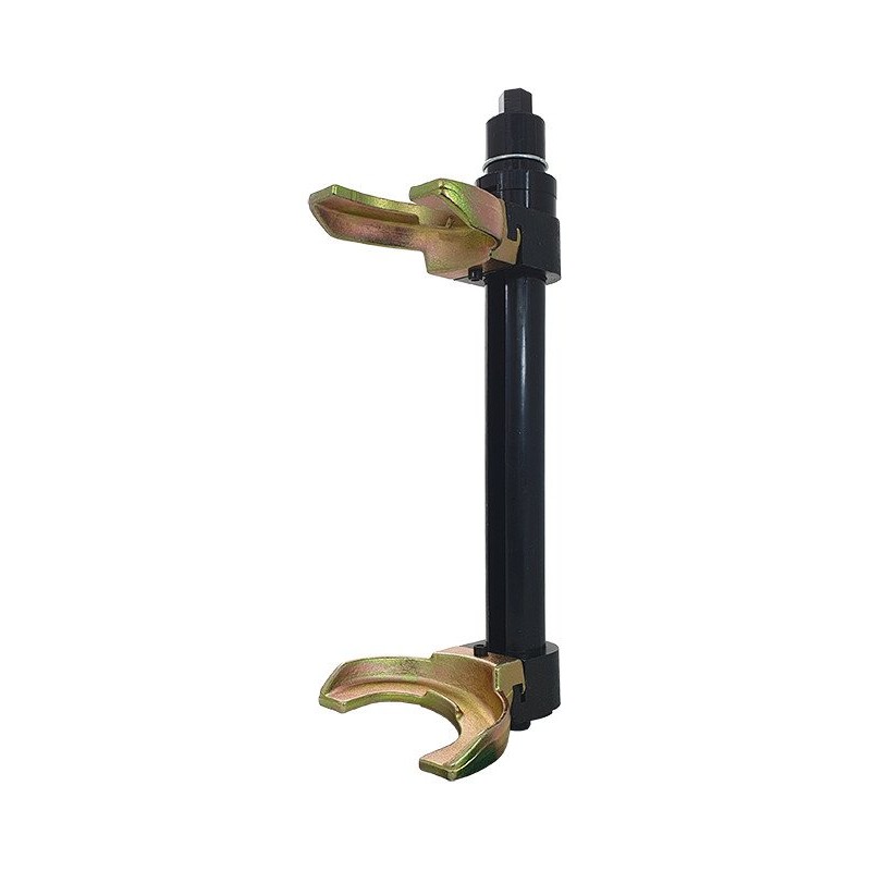 Ściągacz charakteryzuje się dużą siłą ściskania, co pozwala na bezpieczne i efektywne ściąganie sprężyn. Dzięki równomiernemu rozłożeniu siły na dużą powierzchnię, minimalizuje ryzyko uszkodzenia sprężyn oraz niebezpieczeństwo zerwania narzędzia, co czyni go niezawodnym w trudnych warunkach warsztatowych.
