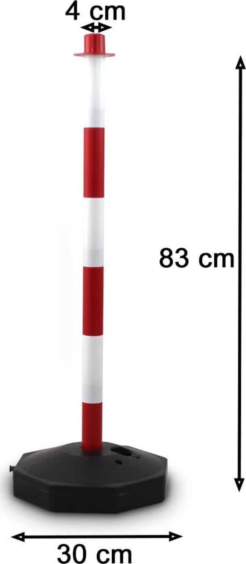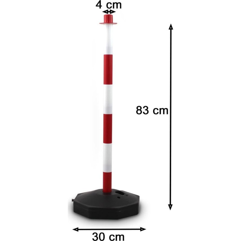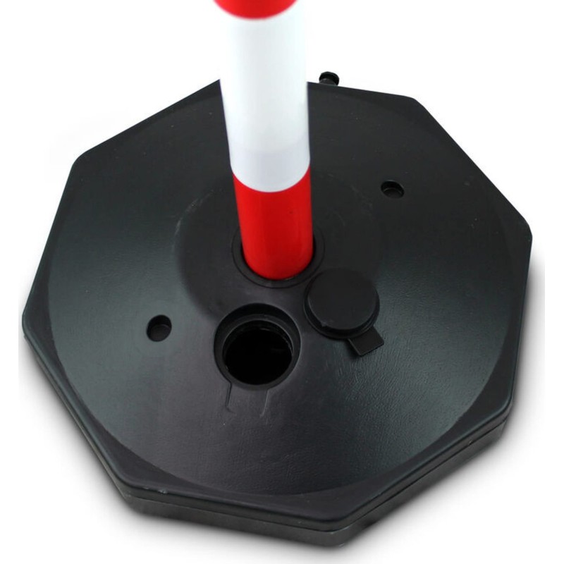 Podstawki można napełnić wodą lub piaskiem, gwarantując w ten sposób stabilność. Słupki można zdemontować na kilka części, co pozwala na wygodne przechowywanie i transportowanie.