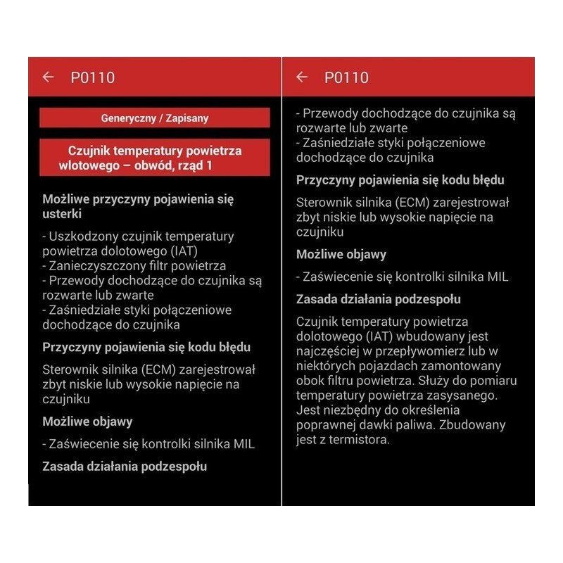 * Lista obsługiwanych parametrów i danych jest ściśle związana z podłączanym samochodem.