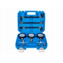 - Skład zestawu: Manometry o różnych zakresach, przewody ciśnieniowe, reduktory, uniwersalne złącza