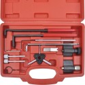 Pełny zestaw zawiera narzędzia do blokady wału rozrządu do owalnych i okrągłych przekładni, trzpienie do blokady wału korbowego oraz ustawienia napinacza.