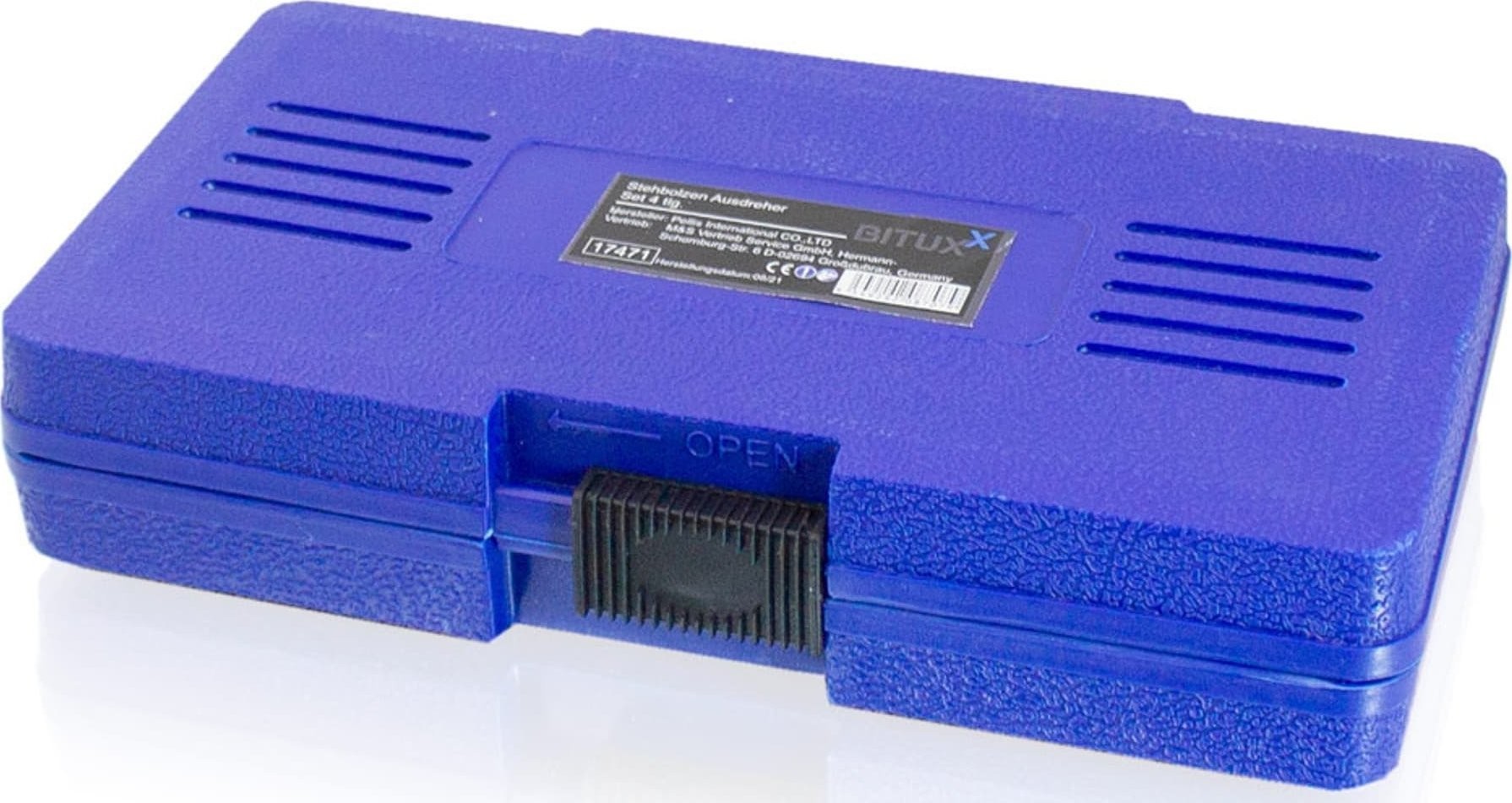 Dzięki zestawowi wykrętaków do szpilek możesz szybko i skutecznie usunąć szpilki bez uszkadzania gwintu lub szpilki. Zestaw ten może być również używany do usuwania uszkodzonych lub złamanych śrub.
