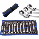 Kpl. kluczy płasko-oczkowych z grzechotką łamanych 12 el. 8-19mm (8)