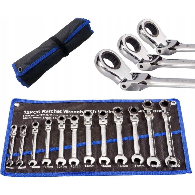 Komplet kluczy płasko-oczkowych z grzechotką łamanych 12 el. 8-19mm – Niezbędne narzędzie w każdym warsztacie