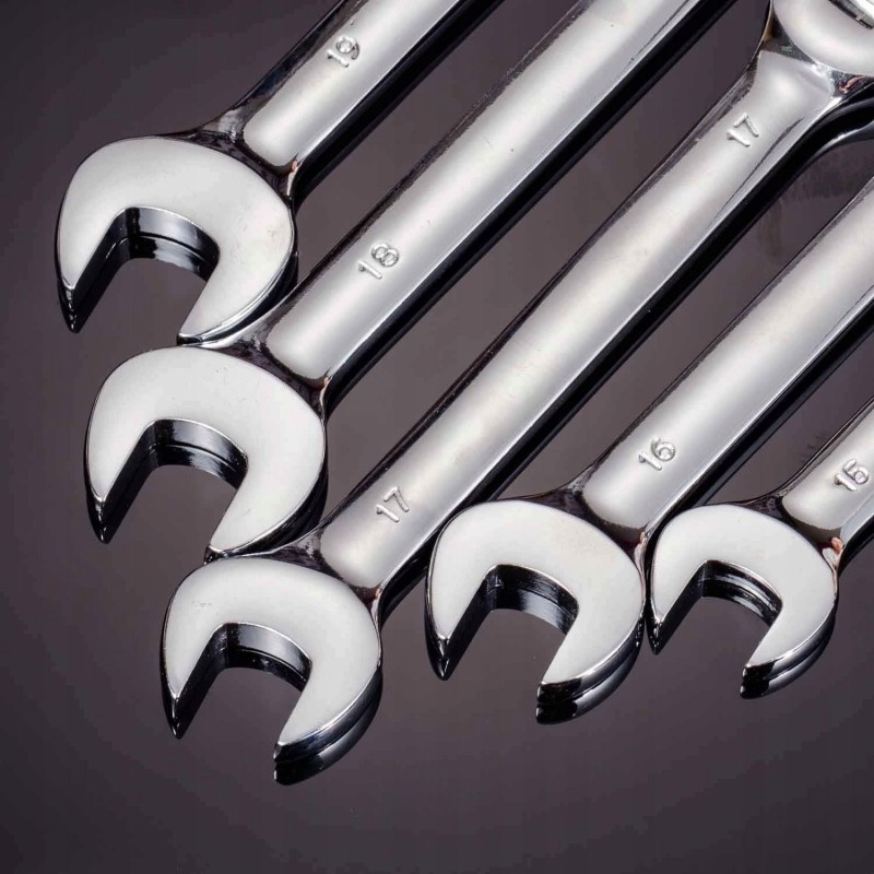 Specyfikacja techniczna kompletu kluczy płasko-oczkowych 8-19mm – Rozmiary i materiał wykonania