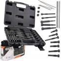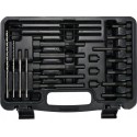 gwintownik x5 (M8x1.0 mm, M10x1.0 mm, M10x1.25 mm, M3x0.5 mm z nakrętką 100 mm, M4x0.7 mm z nakrętką 100 mm)|wiertło specjalne x2 (2.5x120 mm, 3.3x140 mm)|śruba ściągacza L=180 mm