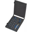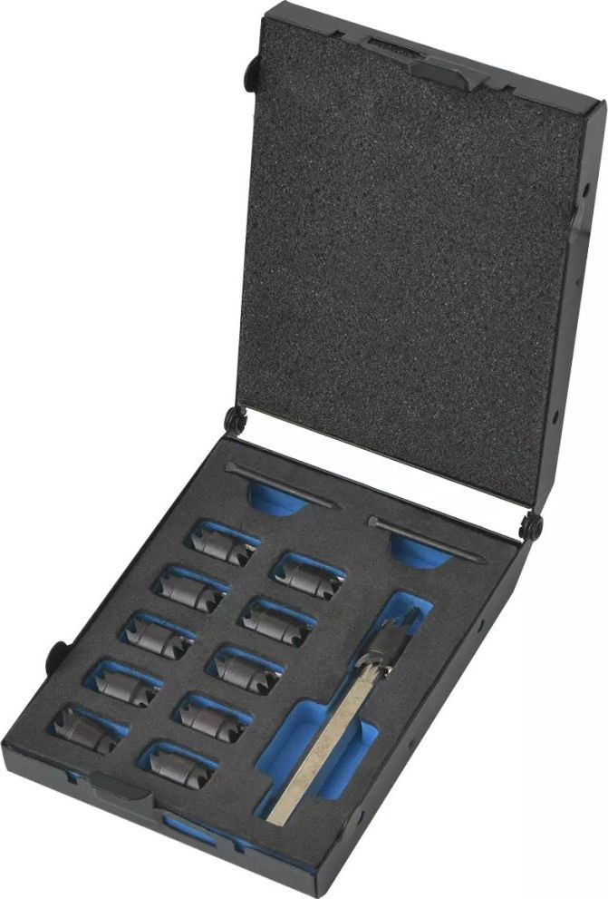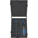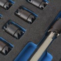 Narzędzia są mocne i wytrzymałe dzięki wykonaniu z wysokiej jakości, szybkotnacej stali kobaltowej. Rozwiertak do zgrzewów wyposażony jest w trzpień naprowadzający głowicę tnącą do spoiny. Zestaw dostarczany jest w wytrzymałej walizce, która ułatwia przechowywanie i transport.