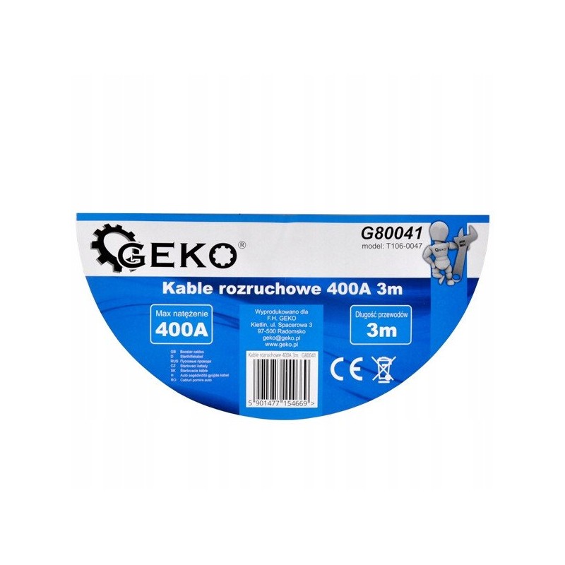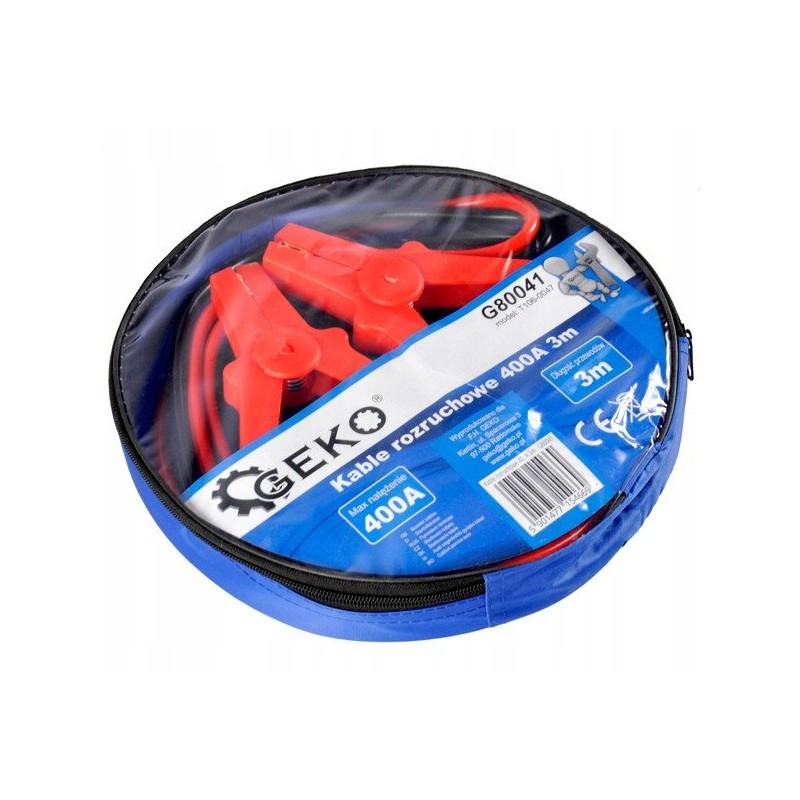 - Zawartość zestawu: kabel czarny (minus), kabel czerwony (plus), pokrowiec, instrukcja użytkowania