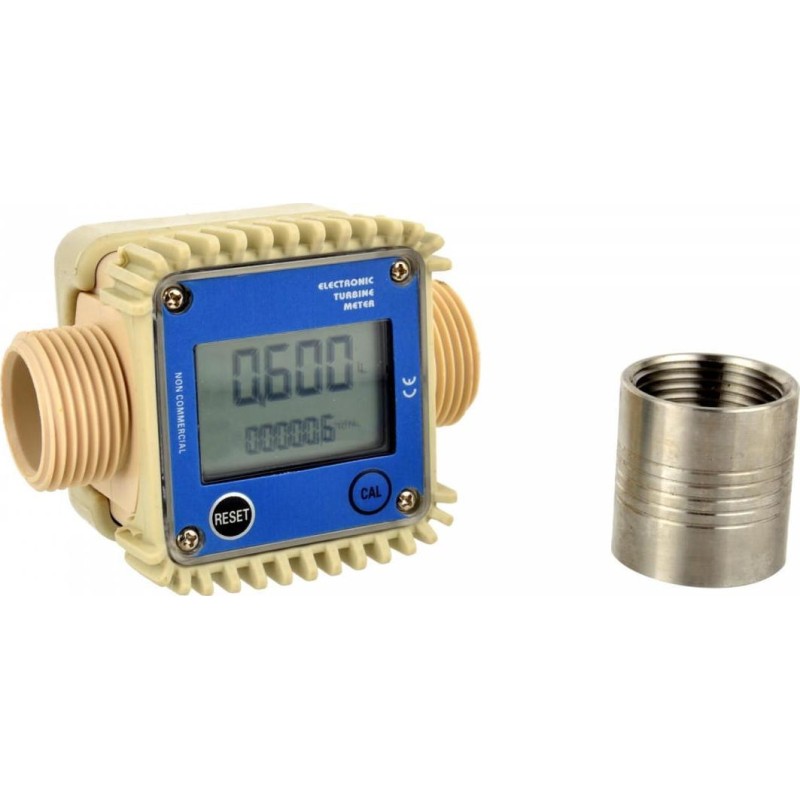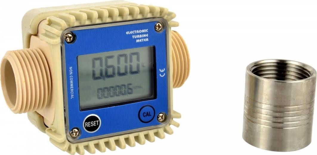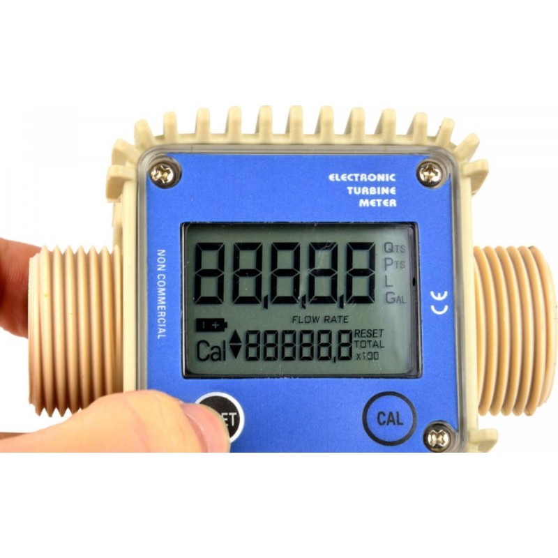 Cyfrowy licznik do pompy paliwa CPN Cyfrowy licznik do pompy paliwa z turbinowym systemem pomiaru przepływu cieczy. Zastosowanie : olej napędowy i inne oleje o niskiej lepkości Urządzenie posiada wyświetlacz LCD z dwoma numerycznymi rejestratorami. Licznik wyświetla dane dotyczące: pojedynczego tankowania aktualny przepływ paliwa sumę wszystkich tankowań Cechy produktu Liczydło pojedynczego tankowania:kasowalne 5 cyfr Liczydło całkowite: 6 cyfr Dokładność: ± 1% Jednostka miary liczydła pojedynczego tankowania: L/Gal/Pts/Qts Jednostka miary liczydła całkowitego: L/Gal Możliwość kalibracji: tak 2 przyciski : RESET i CAL Zasilanie: 2x bateria alkaliczna 1.5V AAA Czas działania baterii w trybie czuwania: 2 lata