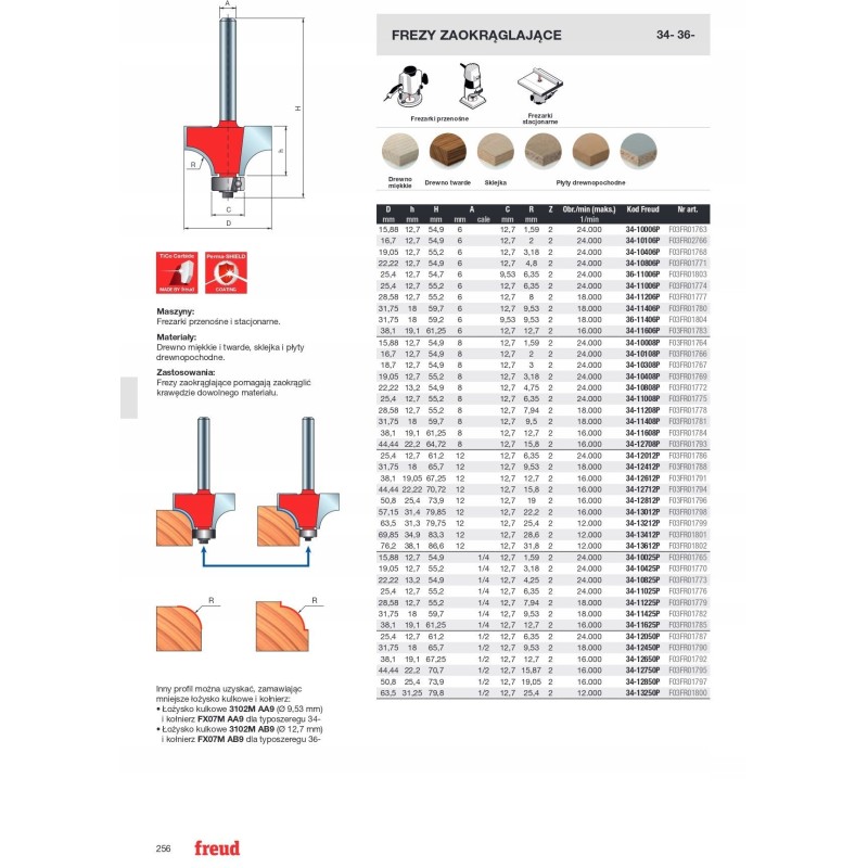 Frez 34-10808P to doskonałe rozwiązanie do zaokrąglania krawędzi, co czyni go nieocenionym narzędziem w obróbce drewna. Dzięki niemu można uzyskać estetyczne i gładkie wykończenie, które podnosi jakość wykonania projektów stolarskich. Jego zastosowanie jest szerokie, obejmujące zarówno meble, jak i dekoracyjne elementy wykończeniowe.
