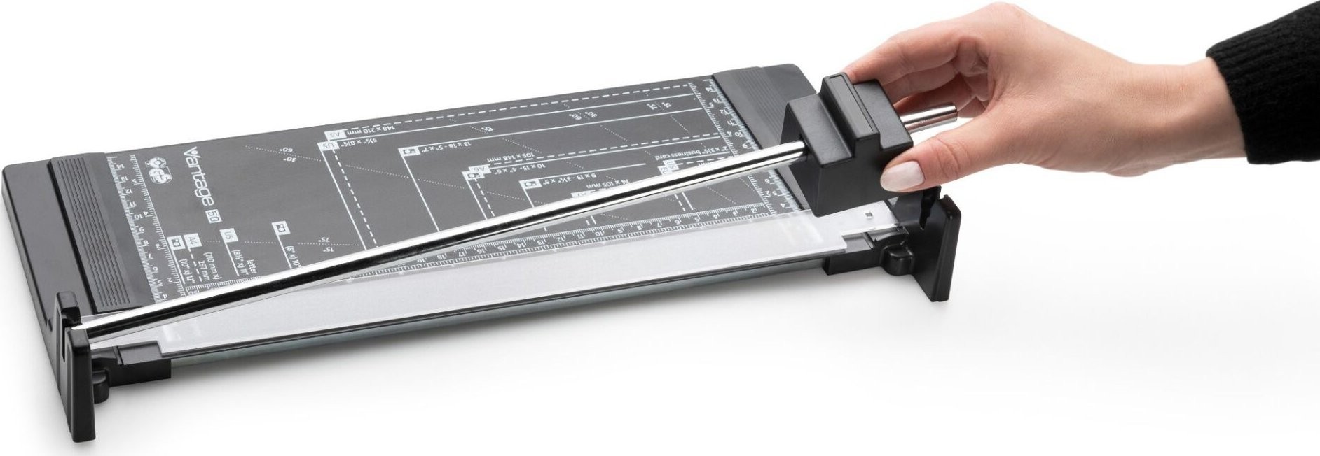 Cechy produktuKaiser Schneidemaschine 320 mm (4108) charakteryzuje się łatwą wymianą głowicy tnącej oraz wysoką wydajnością cięcia. Może przeciąć do 5 arkuszy papieru o gramaturze do 80 g/m² jednocześnie. W zestawie znajduje się również tylny ogranicznik, co zwiększa komfort użytkowania.