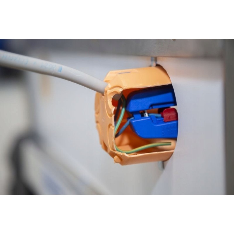 W razie potrzeby ogranicznik długości można usunąć. Narzędzie do ściągania izolacji automatycznie dostosowuje się do wymaganego przekroju przewodu – nie jest więc konieczna ręczna regulacja.