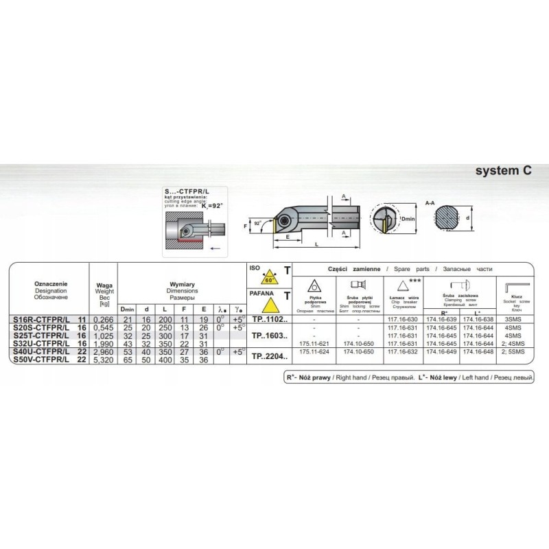 Specyfikacja techniczna Noża Tokarskiego Składanego S20S CTFPR-16