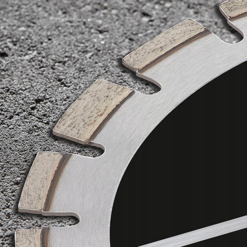 Tarcze diamentowe DeWALT ELITE SERIES zostały stworzone z myślą o trwałości i efektywności cięcia asfaltu i zielonego betonu. Dzięki zastosowaniu segmentów spawanych laserowo z większą ilością diamentów oraz mocniejszym spoiwem, tarcze te oferują aż 5-krotnie dłuższy czas użytkowania przy cięciu twardych materiałów w porównaniu do tarcz przeznaczonych do betonu C35. Opatentowana konstrukcja ostrza strzały umożliwia szybkie cięcie w twardym betonie oraz zapewnia wysokiej jakości proste i głębokie cięcia. Wzmocniona matryca węglowa zwiększa wiązanie diamentu, co przekłada się na jeszcze większą wydajność. Rdzeń tarczy wykonany ze stali wysokostopowej umożliwia proste i głębokie cięcia.