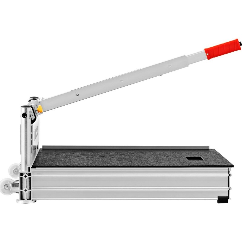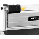 Gilotyna do paneli marki MSW pozwala bez wysiłku skrócić deski podłogowe bez odprysków. Obsługa maszyny odbywa się ręcznie, bez użycia prądu. Długa dźwignia zapewnia idealne przenoszenie siły. Pozwala precyzyjnie ciąć panele przy niewielkim nacisku. Urządzenie posiada możliwość ustawienia kąta cięcia. Ułatwia także cięcie desek o grubości do 16 mm. Szerokość cięcia wynosi 490 mm. Urządzenie nadaje się do obróbki płyt MDF, VCT, PCV, płytek dywanowych, gumowych, winylowych, skóry oraz winylowych i cementowo-wiórowych paneli elewacyjnych. Gilotyna generuje mniej kurzu niż przecinarka elektryczna a krawędzie po cięciu są zawsze idealne.