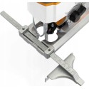Nie można również zapomnieć o prowadnicy równoległej, która umożliwi Ci perfekcyjne cięcie o wysokiej stabilności oraz pozwoli na ustawienie odpowiedniego wymiaru dzięki nałożonej i wyraźnie widocznej skali