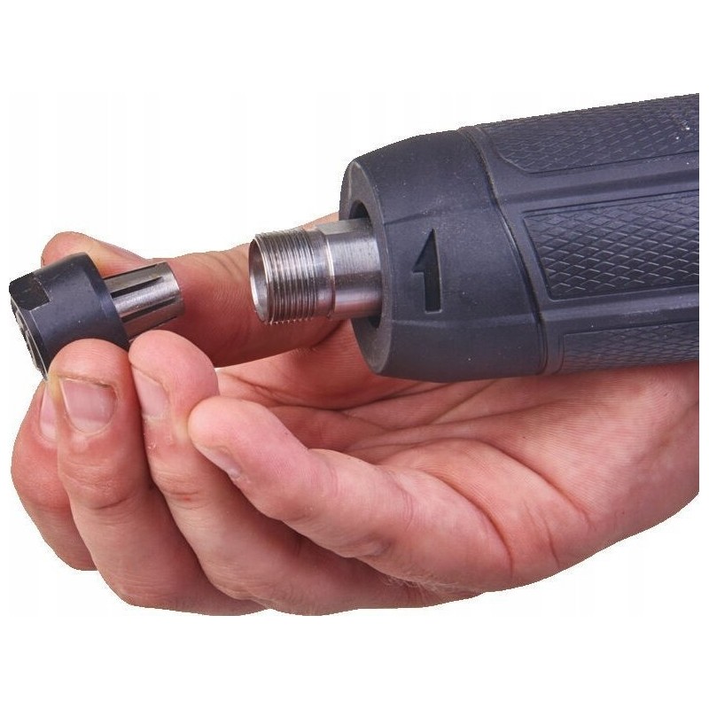 - Uniwersalny uchwyt pasuje do akcesoriów o średnicy 6 i 8 mm, rozszerzając zakres zastosowań szlifierki.