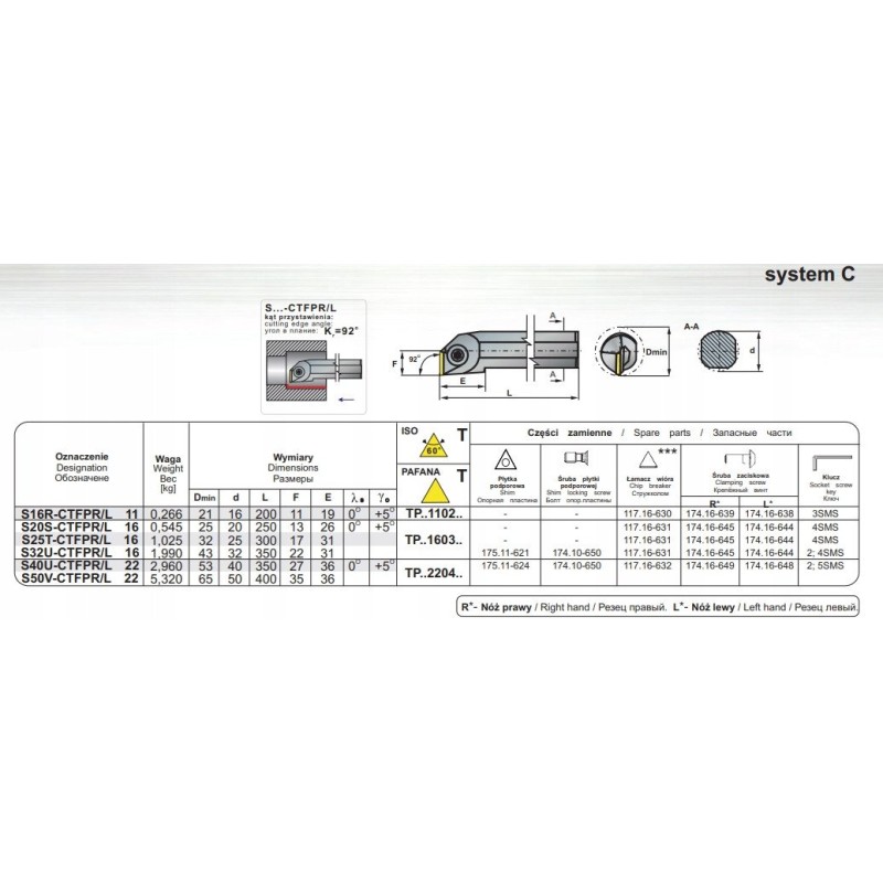 Specyfikacja techniczna Noża Tokarskiego Składanego S32U CTFPR16