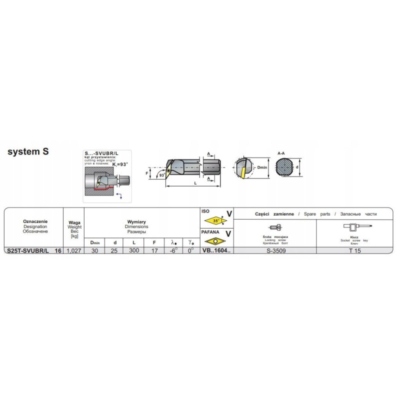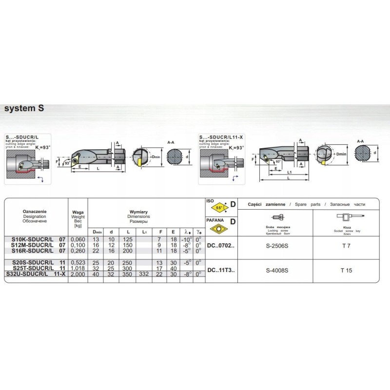 Specyfikacja techniczna Noża Tokarskiego S25T SDUCR 11 Pafana