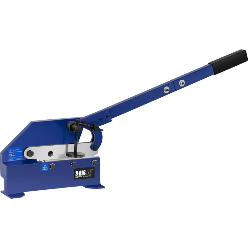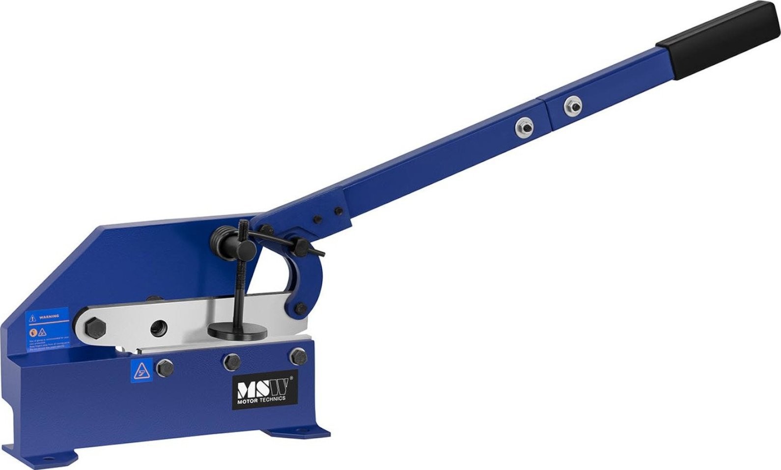 Nożyce gilotynowe marki MSW pozwalają na cięcie elementów wykonanych z tworzywa sztucznego i metalu (blacha, pręty, drut). Dwa wysokiej jakości ostrza wykonane zostały z trwałej stali T10, która wykazuje dużą odporność na ścieranie. Pozwalają one na wykonanie precyzyjnej obróbki materiału o maksymalnej grubości 6 mm. 170-milimetrowa powierzchnia tnąca umożliwia cięcie arkuszy o różnych rozmiarach. Długa dźwignia z antypoślizgową gumową osłoną zapewnia wygodną obsługę. Gilotynę można dla większej stabilności przytwierdzić do podłoża.