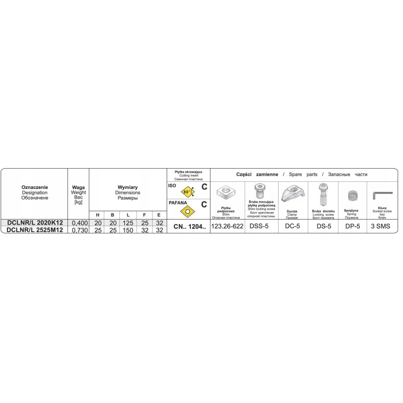Specyfikacja techniczna noża tokarskiego DCLNR 2525 M12