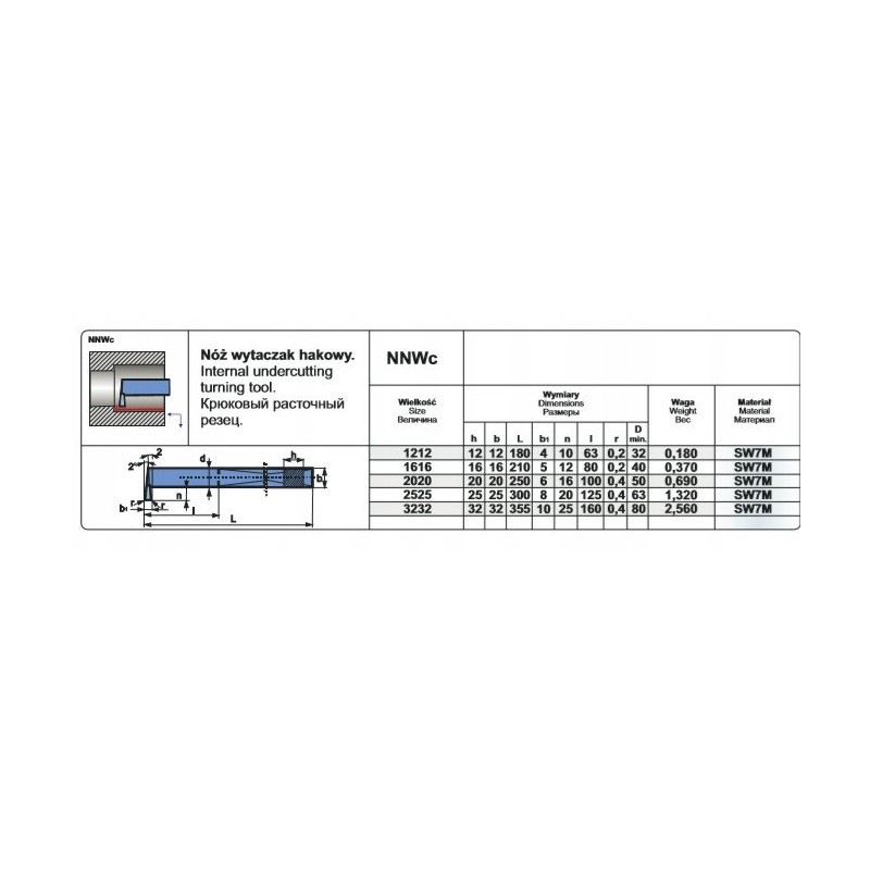Specyfikacja techniczna Noża Tokarskiego NNWC 2525 SW7 NOZ TOK.ISO 11