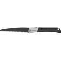 Stalowe ostrze SK-5 pokryte jest powłoką teflonową, co zapewnia lepszy ruch i minimalizuje ryzyko zahaczenia. Ta piła charakteryzuje się znakomitymi właściwościami tnącymi i dużą precyzją. Bez trudu tnie nawet nieco grubsze gałęzie, a blokowane ostrze pozostaje stabilne w trakcie użytkowania. Piła ma wygodną i przyczepną rękojeść wykonaną z tworzywa ABS oraz gumy i jest wyposażona w pętlę na końcu, co pozwala na jej powieszenie np. na drzewie lub haczyku.