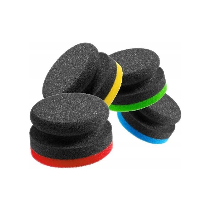 - Twarde gąbki polerskie stosowane są wraz z agresywnymi pastami polerującymi. Taka kombinacja wykorzystuje ich siłę ścierającą w najbardziej efektywny sposób. Współpraca twardej pianki i silnego środka ściernego pozwala najszybciej usunąć głębokie rysy.