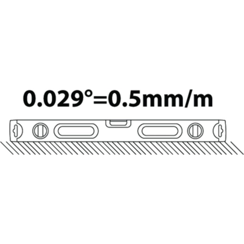 - 0,5 mm / m precyzja w normalnym położeniu. 0,75 mm / m, w pozycji odwróconej