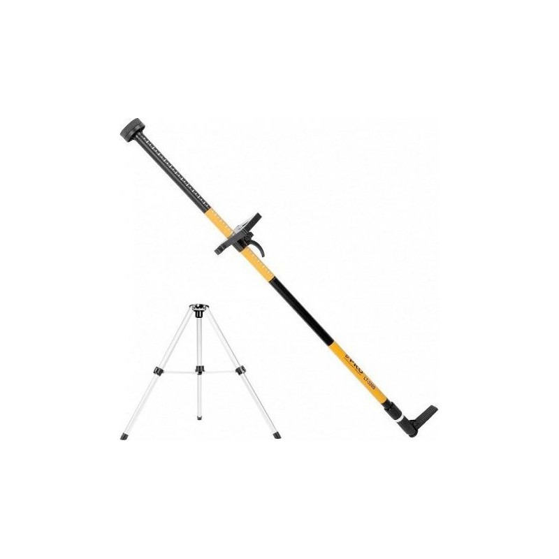 Dane techniczneProducent: ProKod producenta: 3-01-06-38-014 Wysokość: do 320 cmIlość sekcji odkręcanych: 4 elementyGwint uchwytu: 1/4", 5/8"Tyczka rozporowa LT-334S-2GT z trójnogiemTyczka rozporowa LT-334S-2GT marki PRO, od ponad 20 lat jednego z liderów w branży budowlanej.Narzędzie to jest pomocne podczas ustawiania linii lasera na wybranej wysokości, umożliwia dogodny pomiar za pomocą lasera krzyżowego w pomieszczeniach o wysokości do 3,2m bez konieczności stosowania dodatkowych statywów, czy innych tym podobnych urządzeń.Możliwość ustawienia lasera na dowolnej wysokości dzięki regulowanemu uchwytowi mocującemu z centralną śrubą o gwincie 5/8.Wyposażony w podziałkę metryczną, ułatwiającą umieszczenie lasera na żądanej wysokości.Przyrząd bardzo wygodny i praktyczny, umożliwiający zarówno bezproblemowy transport oraz idealne dopasowanie rozmiaru tyczki do wysokości pomieszczenia dzięki rozkręcanym poszczególnym elementom narzędzia.2 odkręcane stopki - ruchoma prostokątna i okrągła piankowa podsufitka.Dolny element tyczki o budowie teleskopowej, ułatwiającej klinowanie.**Zdjęcia poglądowe...