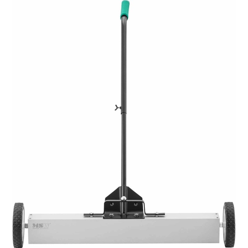 Miotła magnetyczna marki MSW posiada silny magnes ferrytowy. Z powodzeniem zbiera śruby, wióry, gwoździe, igły i inne drobne części metalowe. Pozwala wyczyścić chodniki, rampy, powierzchnie sklepowe, boiska sportowe, warsztaty, place budowy czy parkingi. Miotła posiada regulowany drążek w zakresie 73-100 cm. Szerokość miotły wynosi 75 cm. Czyszczenie magnesu przebiega szybko za sprawą uchwytu zwalniającego na urządzeniu. Duże koła zapewniają zwrotność urządzenia, sprawdzą się nawet na nieutwardzonych powierzchniach.