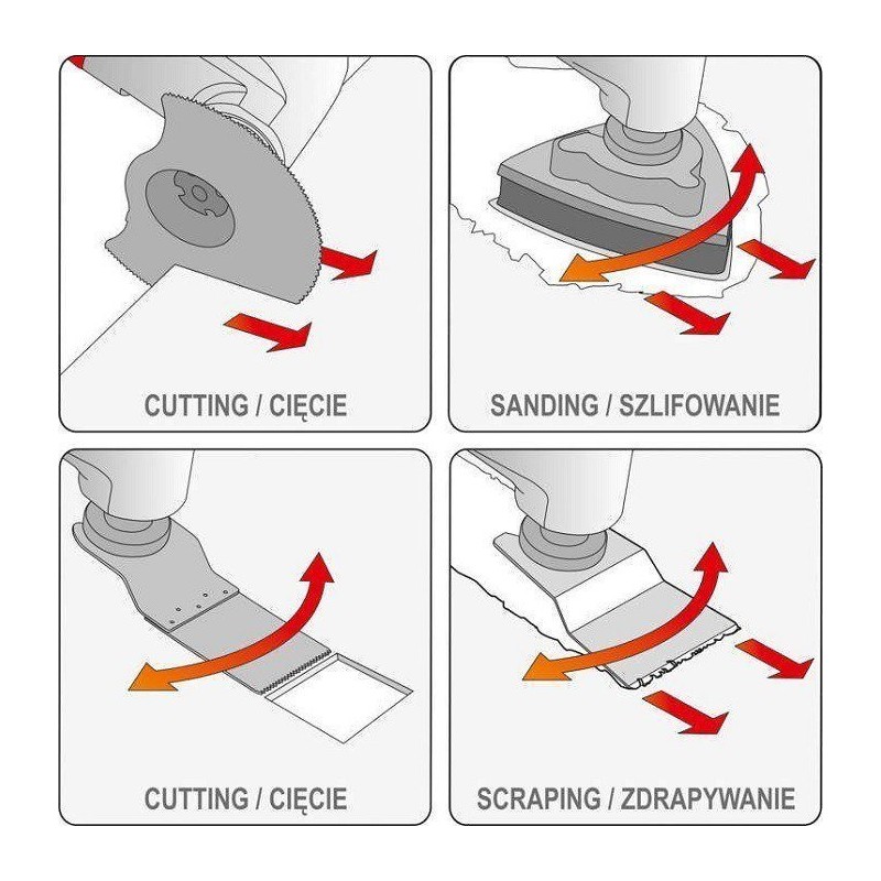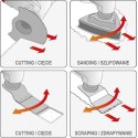 - Służy do cięcia, cięcia wgłębnego bez nawiercania, szlifowania w trudno dostępnych miejscach oraz usuwania tynków, jastrychu, klejów i powłok malarskich.