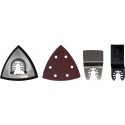 - Zawartość zestawu: narzędzie wielofunkcyjne oscylacyjne, skrobak, brzeszczot do cięcia w głąb, okrągły brzeszczot, podkładka szlifierska, papier ścierny, klucz do wymiany akcesoriów