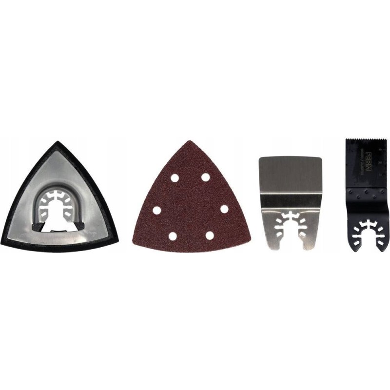 Wszechstronne narzędzie, które w prosty i bezpieczny sposób umożliwia dokładne przycinanie drewna i metalu, cięcie w głąb, zdrapywanie, a także szlifowanie powierzchni. Zmiana akcesoriów jest łatwa nawet bez użycia narzędzi dzięki zastosowaniu blokady. Wykorzystany jest popularny brzeszczot w kształcie półksiężyca, a w zestawie znajdują się ostrza do cięcia oraz podkładka szlifierska z zapasowymi papierami ściernymi.