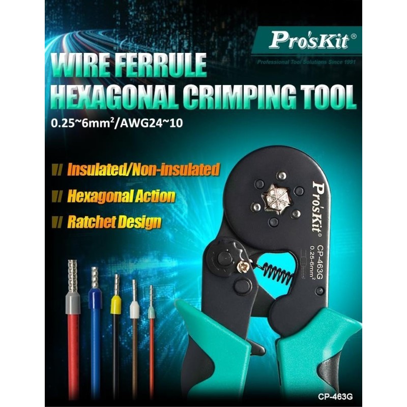 Zaciskarka tulejek 0.25-6mm² Pro'sKit CP-463G – Niezbędne narzędzie dla każdego majsterkowicza