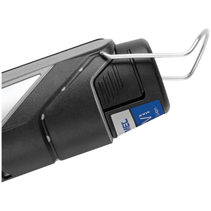 Wskaźniki LED stanu akumulatora informują o pozostałej rezerwie energii akumulatora. Twoje narzędzie Dremel 8240 jest wyposażone w wieszak umożliwiający zawieszenie go w uchwycie Dremel przy zastosowaniu wałka giętkiego Dremel.