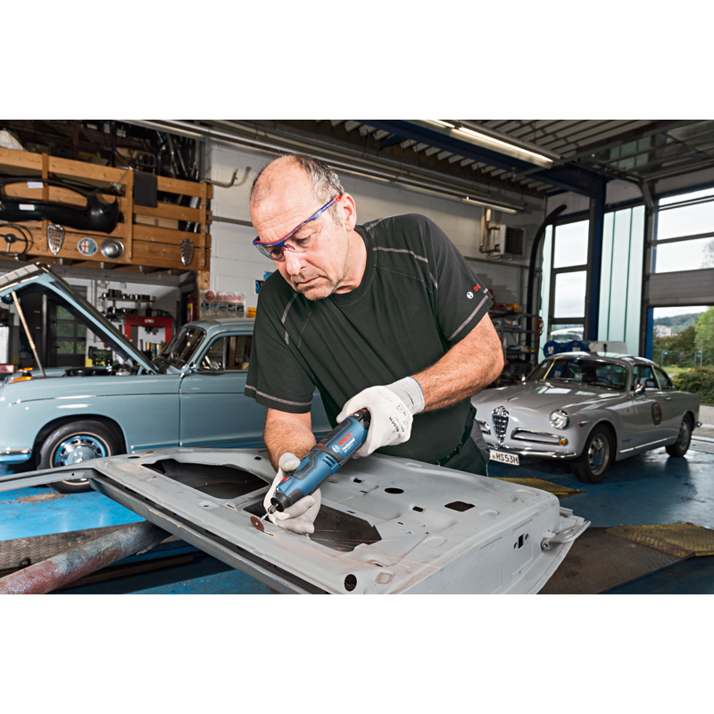 GRO 12V-35 to niezwykle wszechstronne narzędzie, idealne do takich zastosowań, jak cięcie, szlifowanie metalu i innych materiałów, frezowanie, polerowanie, a nawet wiercenie w niektórych powierzchniach. Jest kompaktowe, doskonale wyważone, posiada ergonomiczną konstrukcję i wymienną nasadkę obudowy, dzięki czemu gwarantuje maksymalny komfort i precyzję pracy. Dzięki optymalnej pozycji włącznika (z regulacją prędkości i blokadą wrzeciona) oraz oświetleniu LED zapewniającemu dobrą widoczność podczas pracy w zaciemnionych miejscach, narzędzie zapewnia komfortową obsługę.