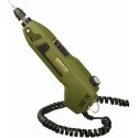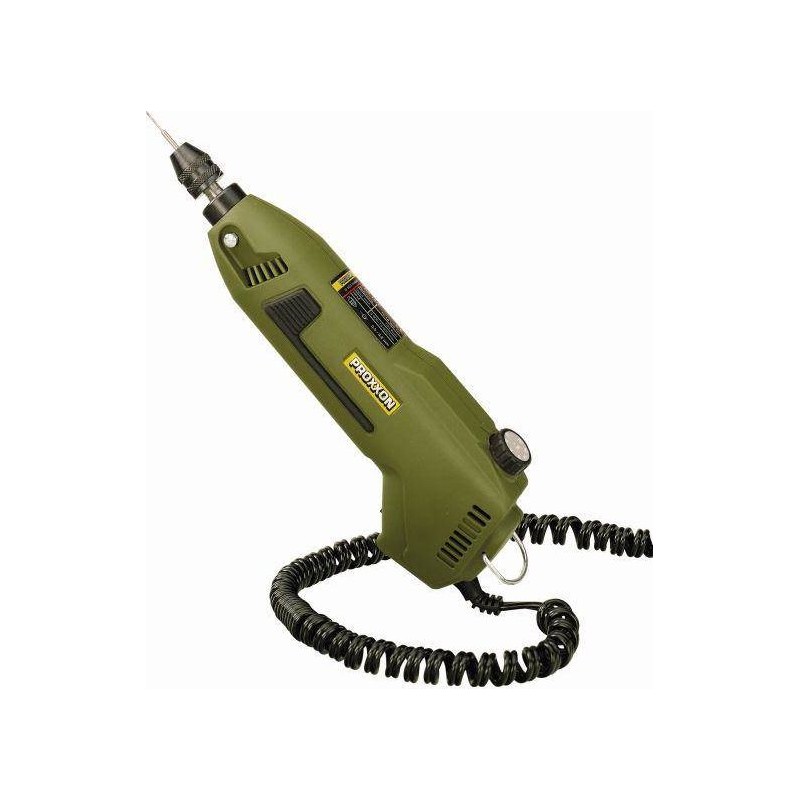 Do precyzyjnego wiercenia, frezowania, szlifowania, polerowania, szczotkowania, odrdzewiania, grawerowania, dłutowania i cięcia. Z uchwytem niewymagającym klucza (zacisk 0,3 – 3,2 mm). Precyzyjne łożysko minimalizuje ruchy boczne. Blokada pomocna przy zmianie wierteł, zamiast kluczy. Wbudowana głowica umożliwia stosowanie stalowych zacisków PROXXON MICROMOT. Specjalny, wyważony, cichy silnik o dużej trwałości. Regulacja obrotów ze sprzężeniem zwrotnym (duża moc przy małych obrotach). Obudowa z poliamidu wzmocnionego włóknem szklanym.