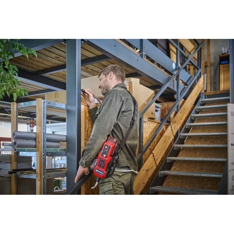 Przewiesić stację przez ramię i pracować w dowolnym miejscu i czasie? Żaden problem dzięki zasilaniu akumulatorowemu i pasowi do noszenia o długości 150 cm!