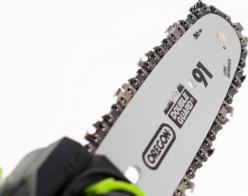 Urządzenie korzysta z prowadnicy oraz łańcucha renomowanej marki OREGON, co zapewnia wysoką jakość i niezawodność. Dzięki temu możesz być pewien, że narzędzie posłuży Ci przez długi czas.