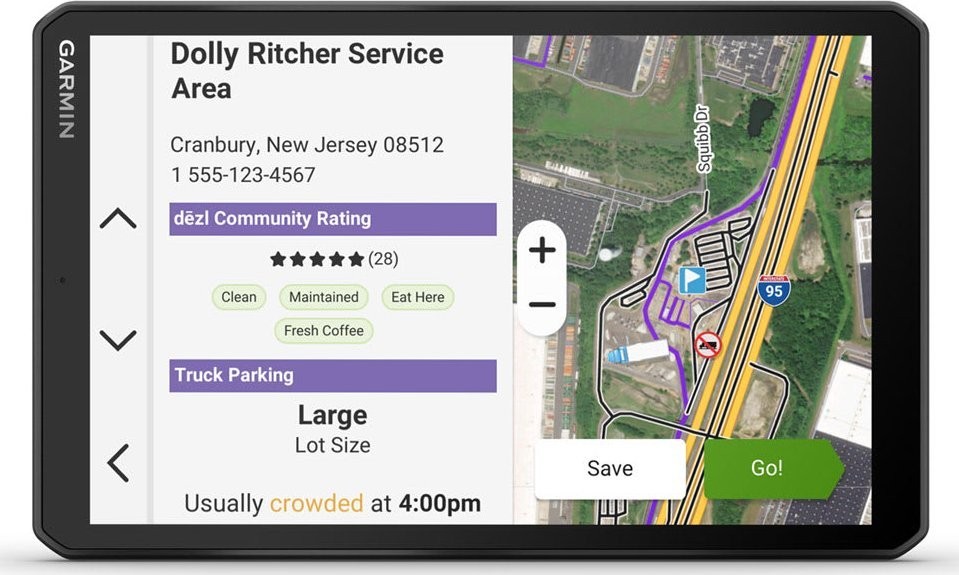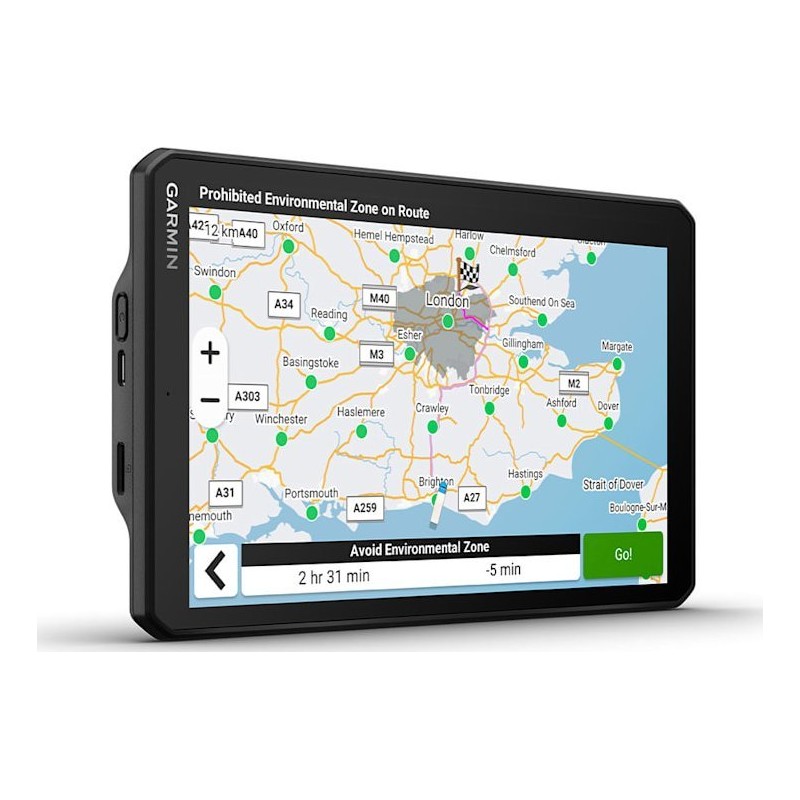 Garmin dēzl LGV820. Obsługa języków: Niemiecki. Długość przekątnej ekranu: 20,3 cm (8"), Rozdzielczość: 1280 x 800 px, Typ ekranu: TFT. Typ nośników pamięci: Flash, Karta pamięci, Obsługiwane typy kart pamięci: MicroSD (TransFlash), Pojemność pamięci wewnętrznej: 32 GB. Obsługiwane operacyjne systemy komórkowe: Android, iOS. Układ: Stały, Kolor produktu: Czarny