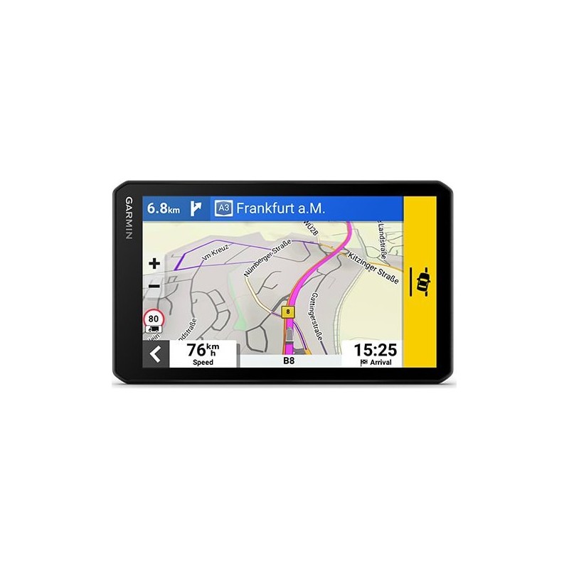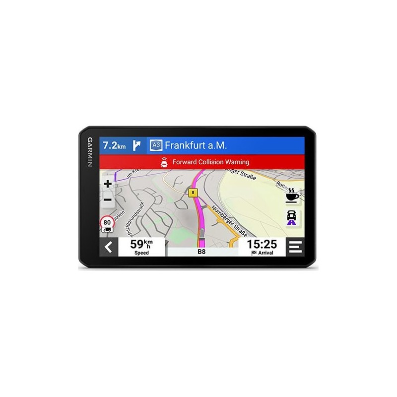 Garmin LGV710. Długość przekątnej ekranu: 17,6 cm (6.95"), Rozdzielczość: 1024 x 600 px, Typ ekranu: TFT. Typ nośników pamięci: Flash, Karta pamięci, Obsługiwane typy kart pamięci: MicroSD (TransFlash), Pojemność pamięci wewnętrznej: 32 GB. Obsługiwane operacyjne systemy komórkowe: Android, iOS. Układ: Stały, Kolor produktu: Czarny. Rodzaj zasilania: DC, Technologia baterii: Litowo-jonowa (Li-Ion), Rodzaj baterii: Wbudowany