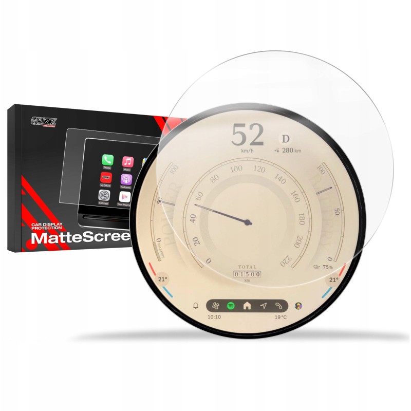Folia matowa GrizzGlass CarDisplay Protection to znakomite rozwiązanie dla właścicieli Mini Countryman E z lat 2023-2024. Gwarantuje skuteczną ochronę ekranu, eliminując odciski palców oraz odbicia światła, co znacząco poprawia widoczność i czytelność wyświetlanych informacji w różnych warunkach oświetleniowych.