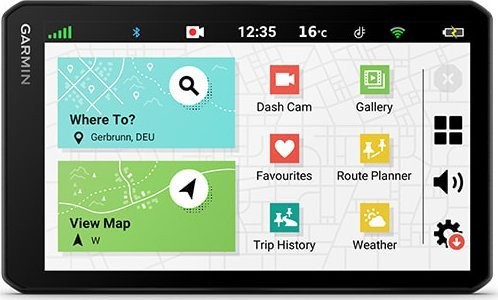 Garmin DriveCam 76. Opcje podglądu map: 2D/3D. Długość przekątnej ekranu: 17,6 cm (6.95"), Rozdzielczość: 1024 x 600 px, Typ ekranu: TFT. Typ nośników pamięci: Flash, Karta pamięci, Obsługiwane typy kart pamięci: MicroSD (TransFlash), Pojemność pamięci wewnętrznej: 32 GB. Układ: Kieszonkowy/Stacjonarny, Kolor produktu: Czarny. Rodzaj zasilania: Prąd przemienny, Bateria, Technologia baterii: Litowo-jonowa (Li-Ion), Czas pracy na zasilaniu akumulatorowym: 0,3 h