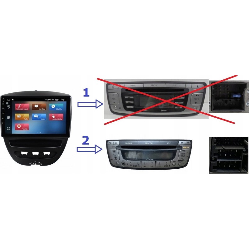 W zależności od fabrycznego radia używane są różne wtyczki połączeniowe.