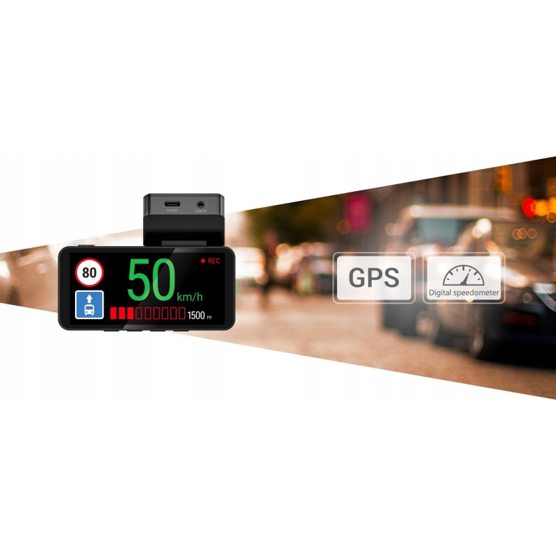 NAVITEL R87 GPS informuje o aktualnej prędkości oraz lokalizacji fotoradarów dzięki wbudowanej antenie GPS. To dodatkowe wsparcie dla kierowców, które zwiększa bezpieczeństwo na drodze.