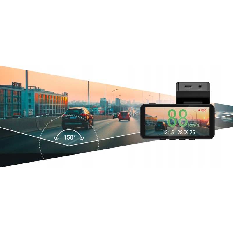 Dzięki zaawansowanej sześciowarstwowej soczewce, NAVITEL R87 GPS oferuje szeroki kąt widzenia wynoszący 150°. To umożliwia uchwycenie szerszego obrazu drogi, co zwiększa bezpieczeństwo i komfort jazdy.
