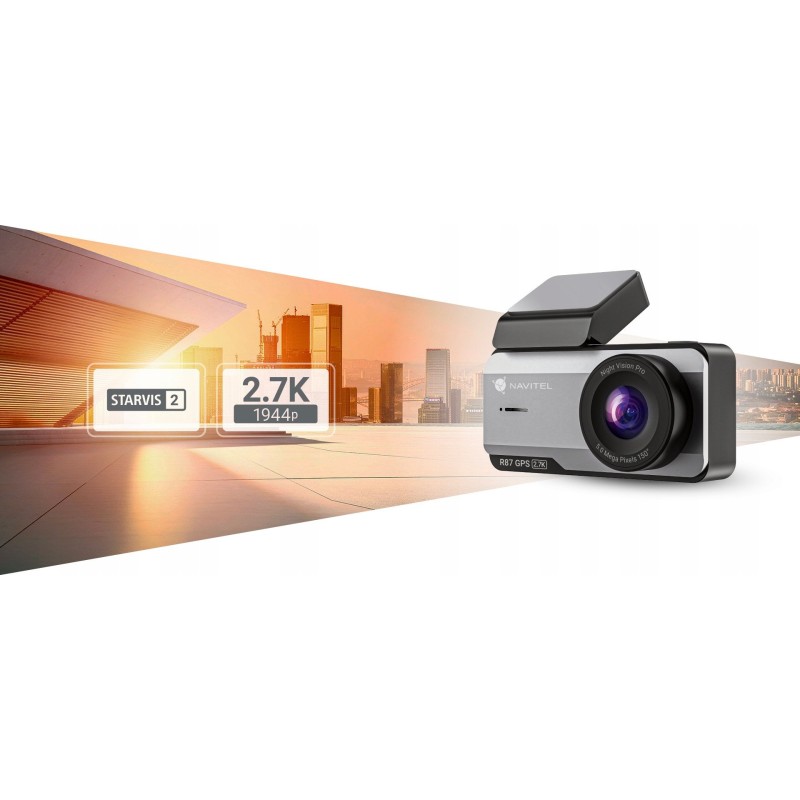 Wideorejestrator NAVITEL R87 GPS rejestruje obraz w imponującej rozdzielczości 2,7K (2592x1944) przy 30 klatkach na sekundę, co pozwala na uchwycenie najdrobniejszych detali. Wykorzystanie sensora optycznego SONY IMX675 oraz technologii SONY STARVIS 2 zapewnia znakomitą jakość nagrań zarówno w dzień, jak i w nocy.